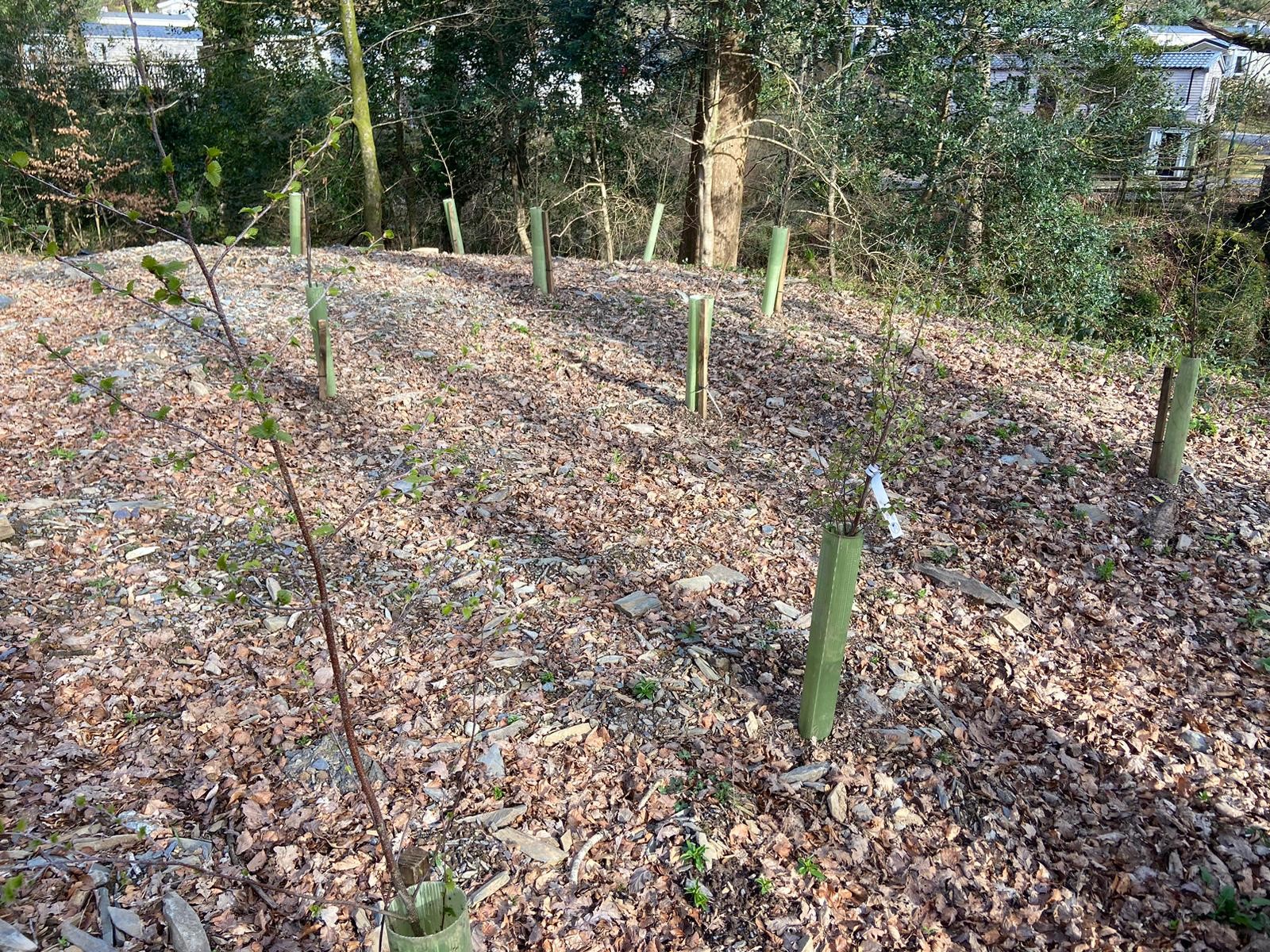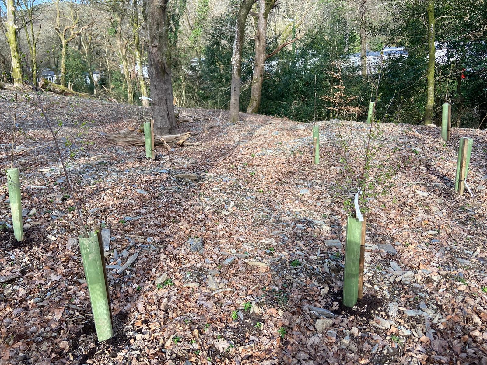 Aberdunant holiday park contacted Eryri Arboriculture Ltd. to carry out an assessment of the condition of the woodland site within which over are over 400 holiday park homes. Aberdunant lodge is a sensitive site as the woodland is situated within Snowdonia national park and any work carried out must be approved by the National Park. Following the survey Eryri Arboriculture Ltd. liaised with Aberdunant and the National Park authority to carry out a replanting scheme that would rejuvenate the woodland improving biodiversity with a careful mix of broadleaves and connectivity using suitable tree species and well thought out positioning.